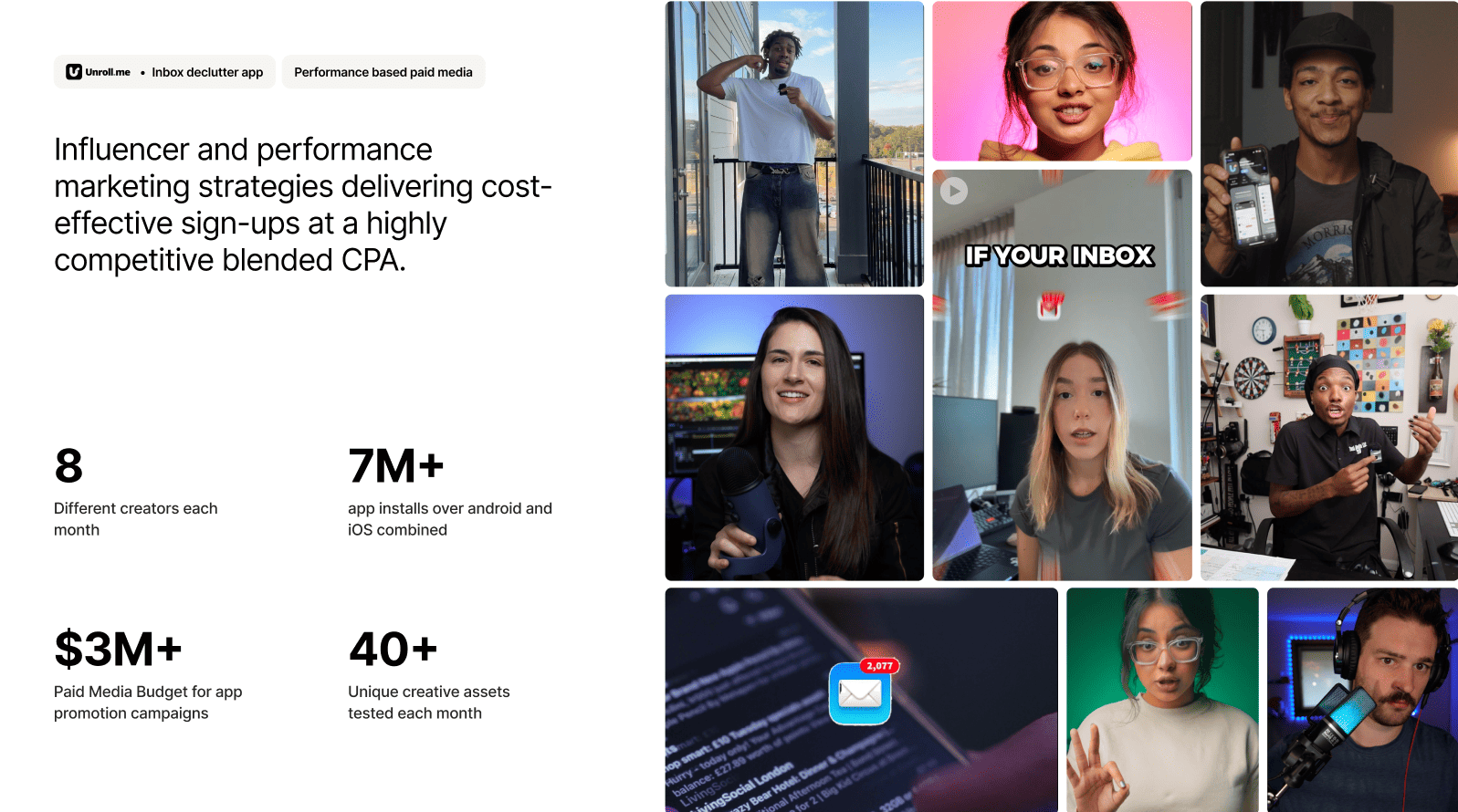 A strong example is their work with Unroll.me, where inBeat combined creator marketing and paid media into one performance system.